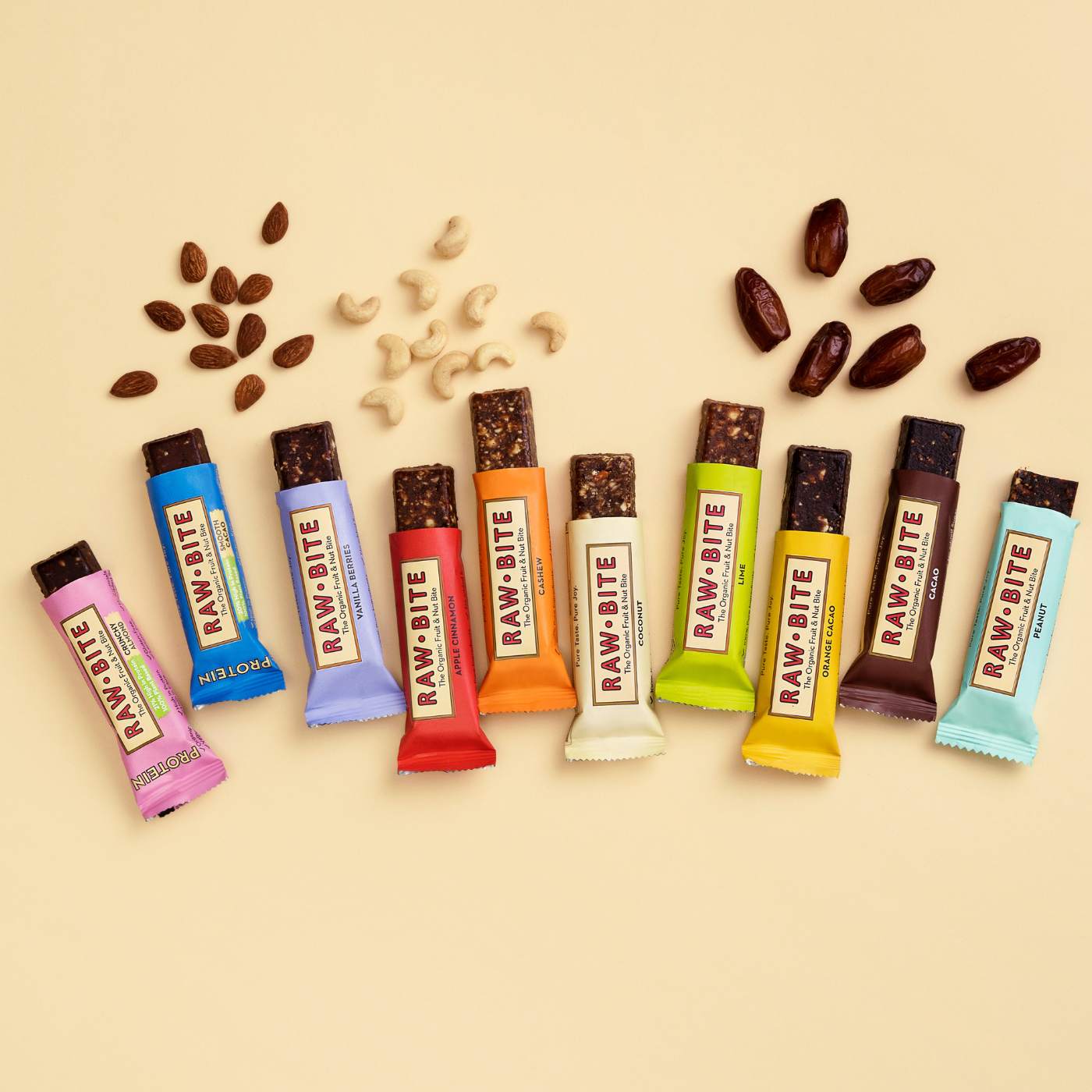 The idea behind RAWBITE is quite simple and straightforward: A fruit and nut bar that is 100% organic, vegan, gluten-free, without lactose and palm oil - and no added sugar (contains naturally occurring sugar) or colourings. Only 100% pure ingredients!